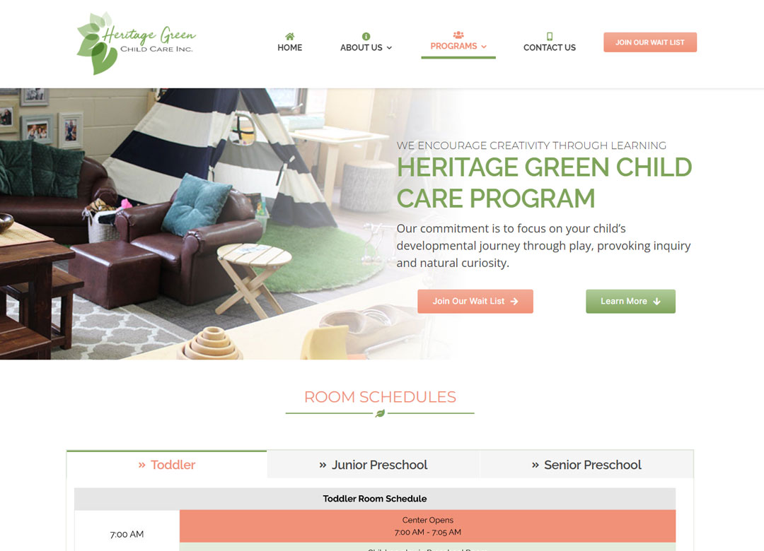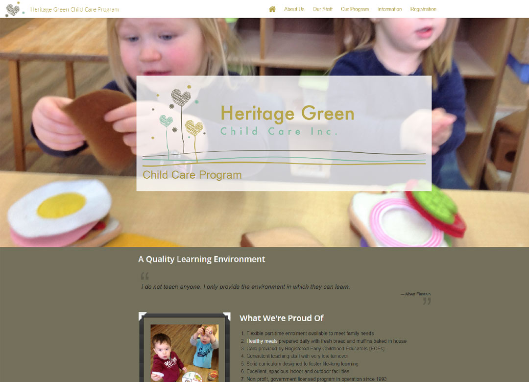 Heritage Green Child Care Inc. is committed to children’s learning, development, health, and well-being. They came to us looking for a new website design to showcase their foundations and goals.